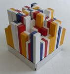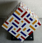 2006Houten kubus beschilderd met de meester Mondriaan in gedachte.... Kubus1 is dezelfde kubus van een andere zijde bezien.
