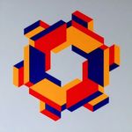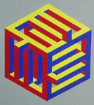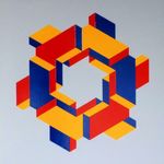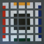 Abstracte schilderijen, meestal in de primaire kleuren geschilderd. M.C. Escher was hierbij een grote inspiratiebron.